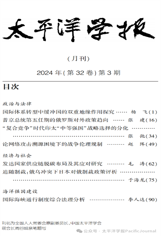 厦门大学东南亚研究中心特任助理研究员、厦门大学世界史流动站博士后杨飞在《太平洋学报》2024年第3期发表论文《国际体系转型中缓冲国的双重地缘作用探究》。
