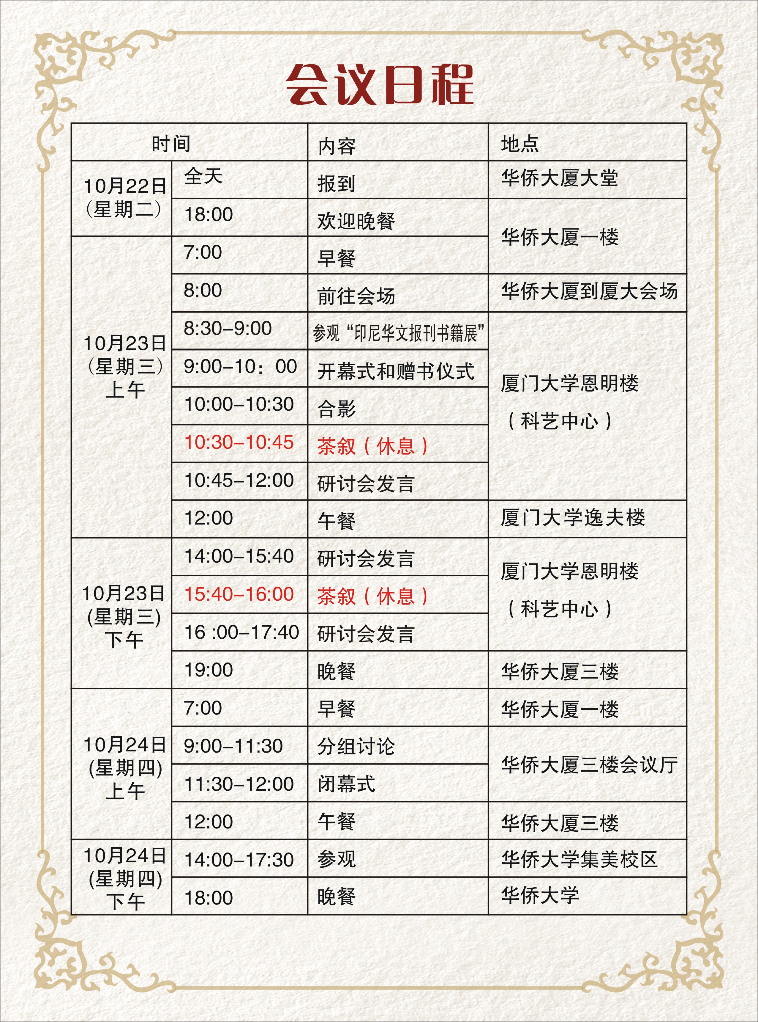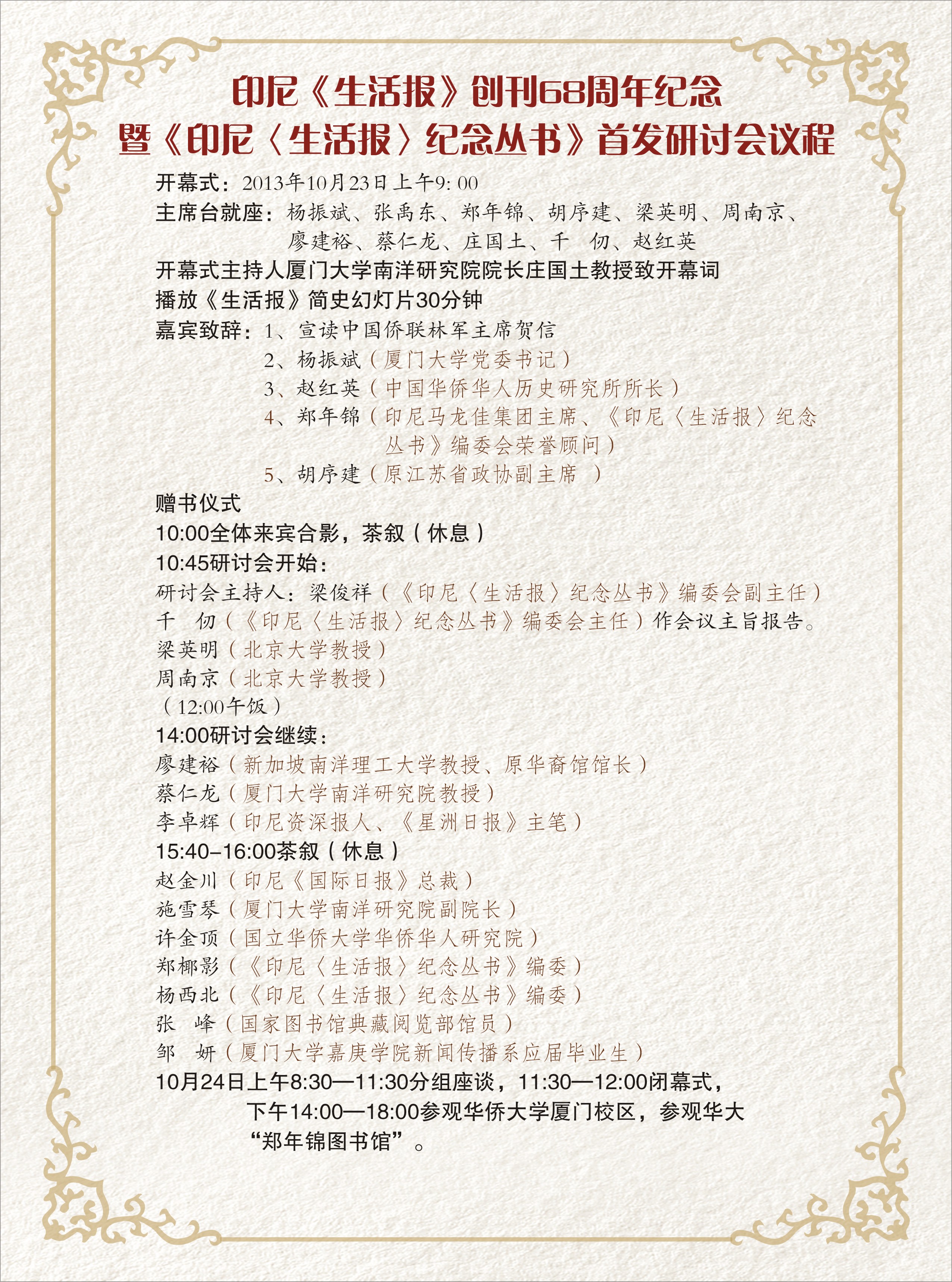 印尼《生活报》创办68周年纪念暨《印尼纪念丛书》首发研讨会议程
