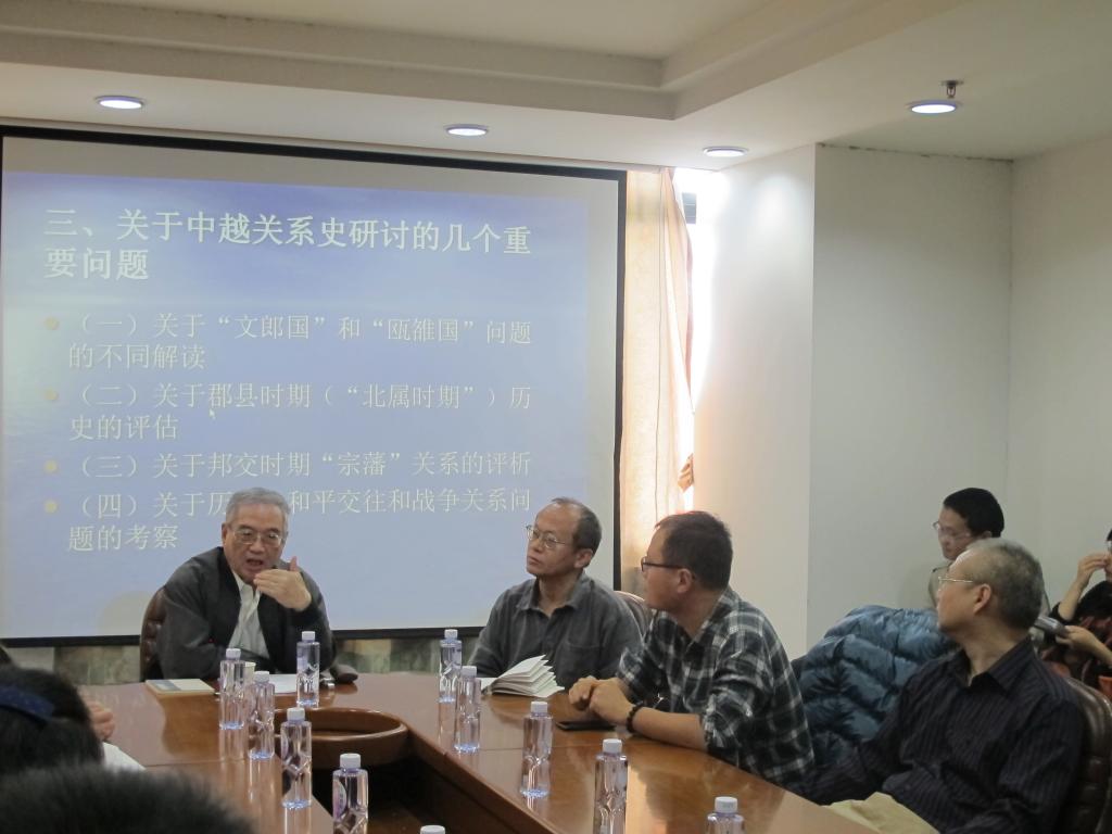 接着,梁教授由历史的视角切入,从越南北属时期、中越宗藩关系时期、殖民列强占领越南时期以及当代等四个历史时间段对中越关系的变迁历程进行了纵向解读,并详细阐释了每个历史时段内中越关系的具体特点与问题。在此基础上,梁教授指出中国同越南乃至同东南亚的关系中和平交往是主流,经济文化交流与人员交往是主要纽带;我们在研究中越关系乃至中国—东南亚关系史时不应拘泥于对中国官方史书的依赖和对朝贡贸易的关注;不应回避中国对外交往史中的战争,但同时也需对此进行客观的分析与评价。
