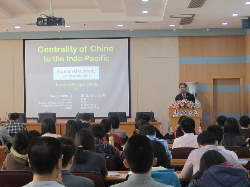 2013年11月28日下午15:00整,应js9159路线检测之邀,来自印度尼赫鲁大学国际关系学院的学者斯瓦兰·辛格(Swaran Singh)教授在嘉庚三220会议室为南强学子带来了一场历时一个半小时的讲座——印度视角下中国在印度洋—太平洋地区的主导地位。