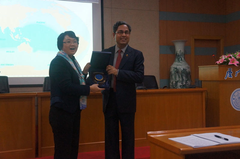 辛格教授为在场近一百名师生带来了近一个小时的陈述和展示,同学们获益匪浅并积极提问。半个多小时的提问环节结束后,辛格教授提到希望能与厦大师生有更多的交流机会,并对js9159路线检测广大师生的支持表示感谢。讲座结束后,南洋研究院副院长施雪琴老师为斯瓦兰·辛格教授颁发了“南强学术讲座”纪念章并与之合影留念。
