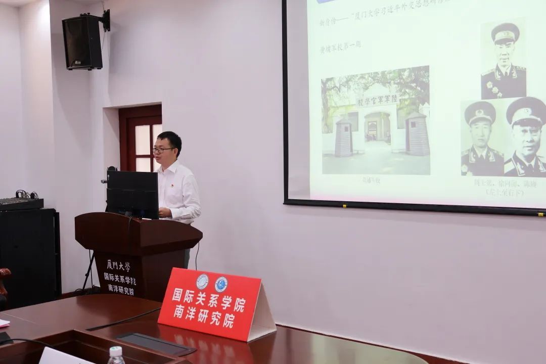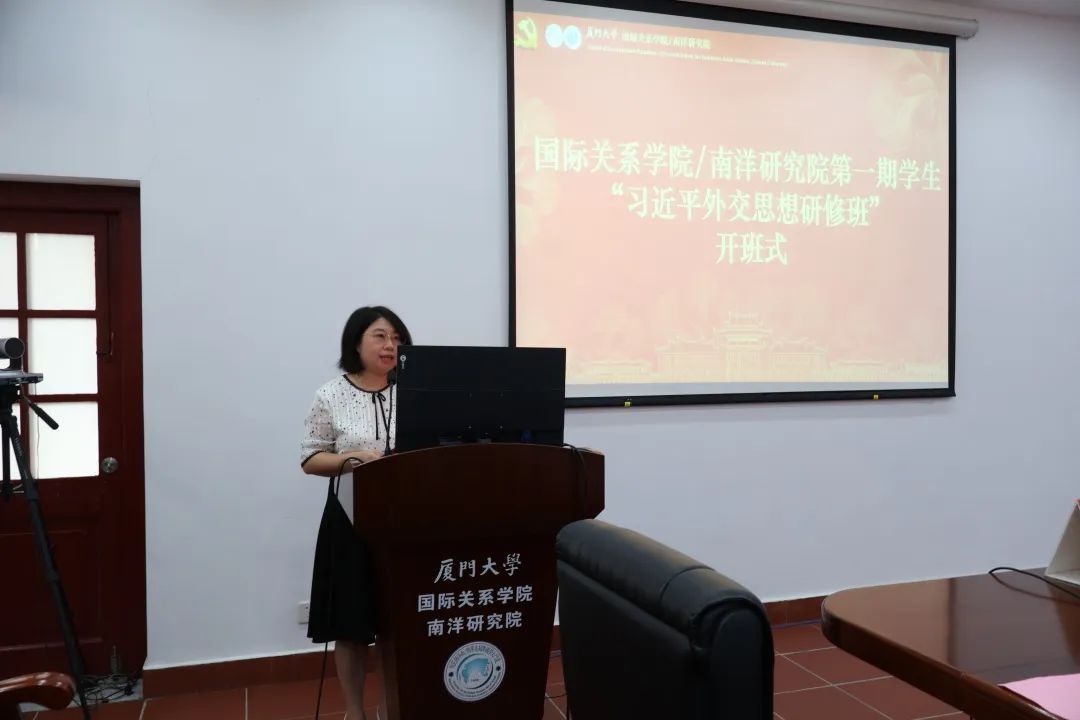 为庆祝中国共产党第二十次全国代表大会胜利召开,10月16日上午,国际关系学院/南洋研究院第一期学生“习近平外交思想研修班”开班仪式在南安楼301(3)顺利举行,全体学员共25人参加。校党建联络员潘宝柱老师、学院全体党政领导、党委委员、教工和学生党支部书记、第88期(学生)党的基本知识学习班成员共同出席。开班仪式由学院党委副书记何丽苹主持。