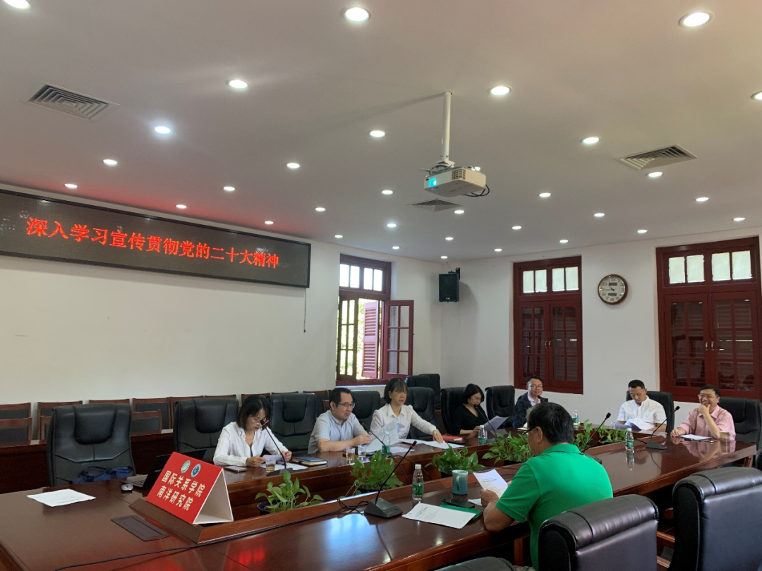 坚持把党的二十大精神贯穿到学院事业发展全过程、各方面。要对标对表二十大报告对教育、外交、人才工作提出的新要求,不断用习近平新时代中国特色社会主义思想武装头脑、指导实践、推动工作,将习近平外交思想有机融入学院各项事业,引导师生扎根祖国大地研究思考,扛起“为党育人、为国育才”政治责任,走好新的赶考之路。