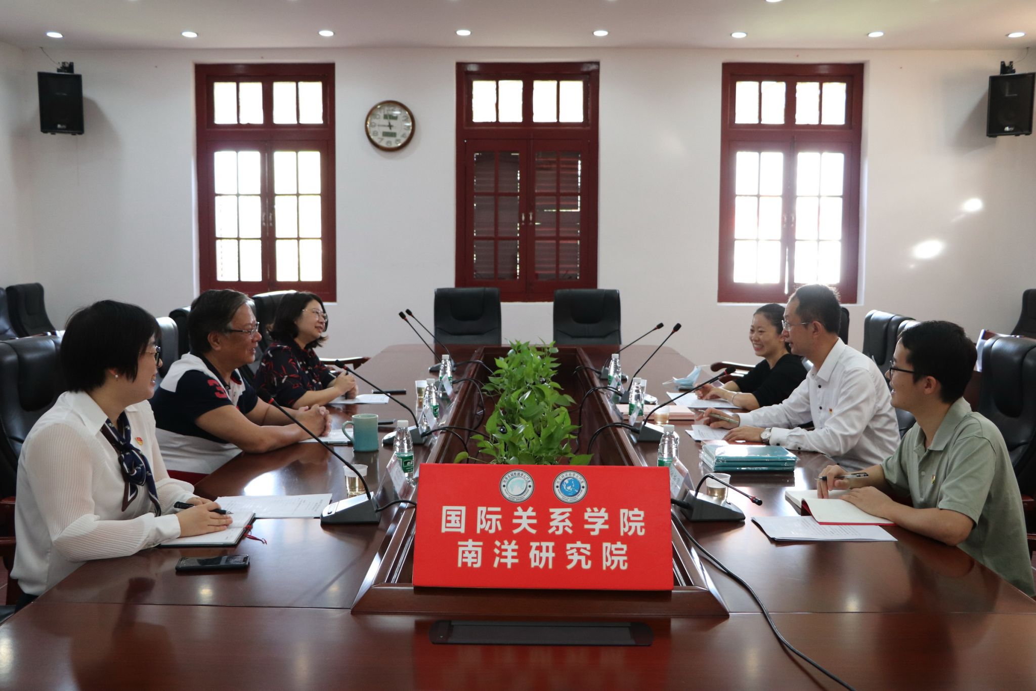 11月11日上午,校党委党校副校长张艳涛教授、秘书胡雯、邱哲昊一行3人莅临国际关系学院/南洋研究院,就党员和干部教育培训、学习宣传贯彻党的二十大精神等工作开展调研交流。国际关系学院/南洋研究院党委书记毛通文,党委副书记何丽苹,党务秘书龙羽西参加调研座谈会。