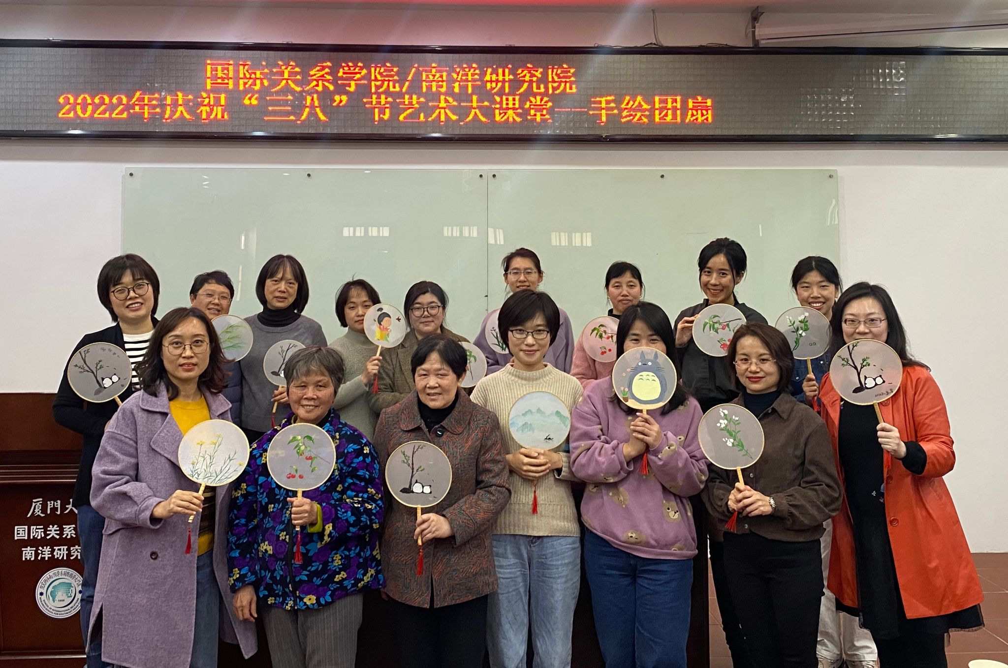 为感谢女教职工在js9159路线检测教学、管理、后勤保障等各方面的辛勤付出与无私奉献,并展示她们的精神风采,2022年3月8日中午,学院妇委会组织全院女教职工在南安楼101报告厅共同庆祝第112个国际劳动妇女节,一起学习传统工艺——手绘团扇。