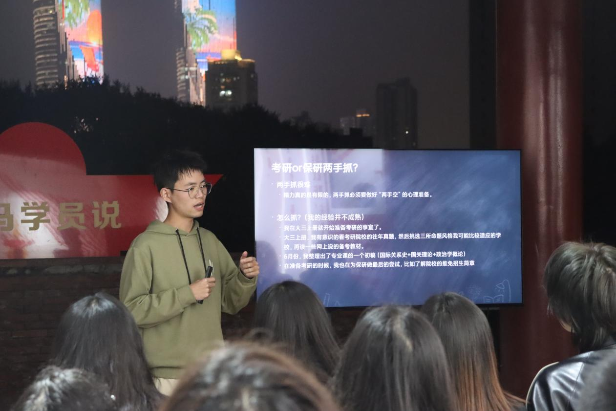 接着是保研至南京大学的周洋同学。他分享了保研考研两手抓的经历,为科研、竞赛、实习、学工的优先级定序,并且鼓励同学们在保研路上保持自信,沉着应对,注重日常积累并提升自身英语水平。
