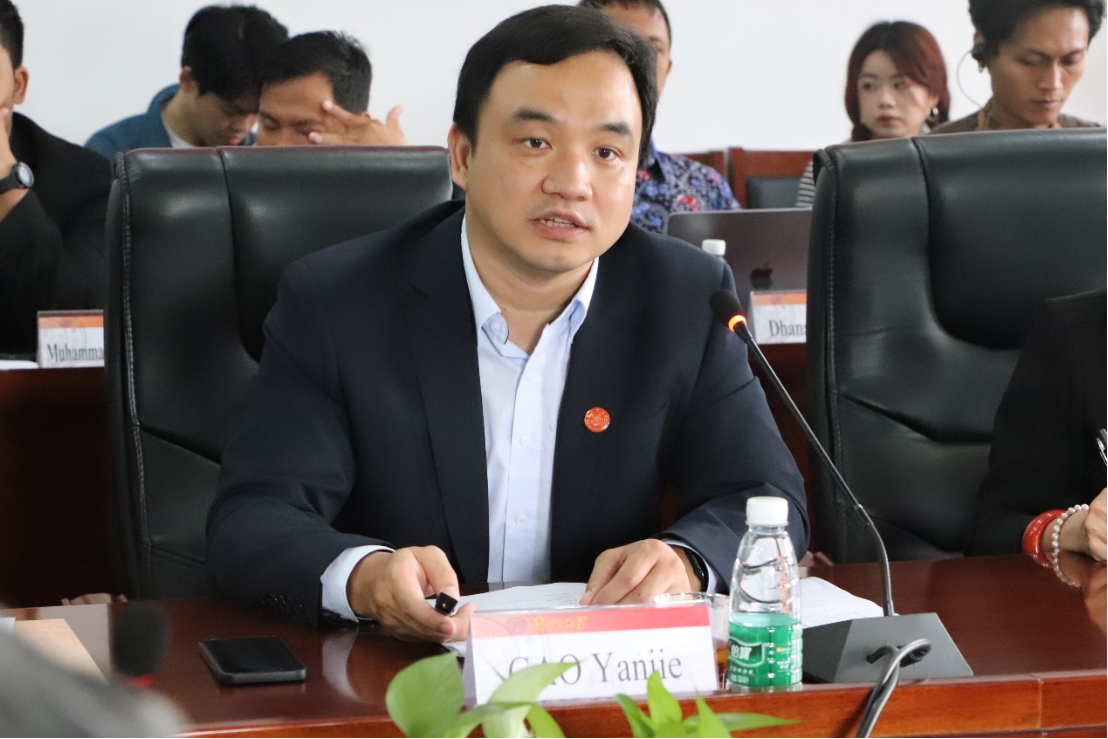 座谈会伊始,高艳杰教授对印尼媒体代表团的到来表示热烈欢迎,并介绍了学院与会的相关机构负责人和专家学者。随后,高艳杰教授就学院的发展历程、组织架构、师资力量、国际交流合作等情况向代表团展开详细介绍。