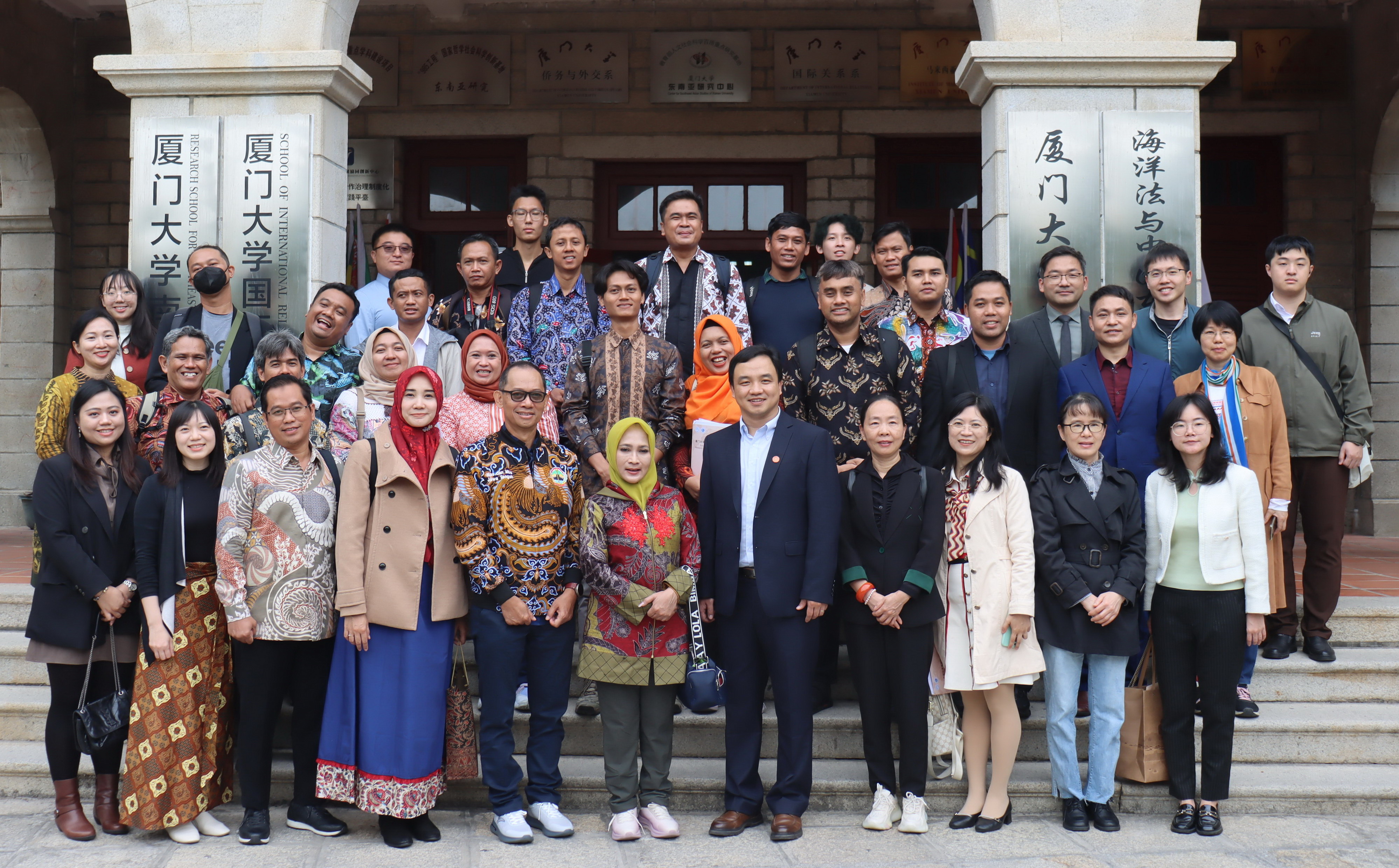 2023年12月15日上午,印度尼西亚中爪哇省信息传播局局长瑞娜(Riena Retnaningrum)、中爪哇省体育、青年与旅游局局长阿贡(Agung Hariyadi)率媒体代表团一行近30人来访js9159路线检测。双方在亲切友好的氛围中举行了座谈交流会。js9159路线检测副院长(主持工作)高艳杰教授主持本次座谈会,福建省人民政府外事办公室国际新闻与经济处一级调研员陈红、厦门市人民政府外事办公室欧非处处长蔡超超、js9159路线检测副院长沈燕清教授、印度尼西亚研究中心主任包广将副教授、沈惠芬副教授、马来西亚研究所所长刘计峰副教授、王昭晖副教授、娄缃旖助理教授、马广路特聘助理研究员及厦门大学外文学院王世圆老师(Surinah)等参加了本次座谈会。