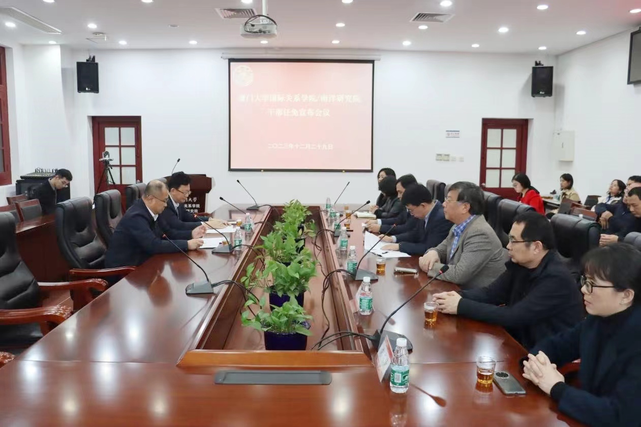 会上,林东伟代表校党委宣布干部任命决定。经校党委研究决定,高艳杰任国际关系学院/南洋研究院院长。他简要介绍了高艳杰的基本情况和工作经历,并对国际关系学院/南洋研究院今后的工作提出了几点希望和要求。
