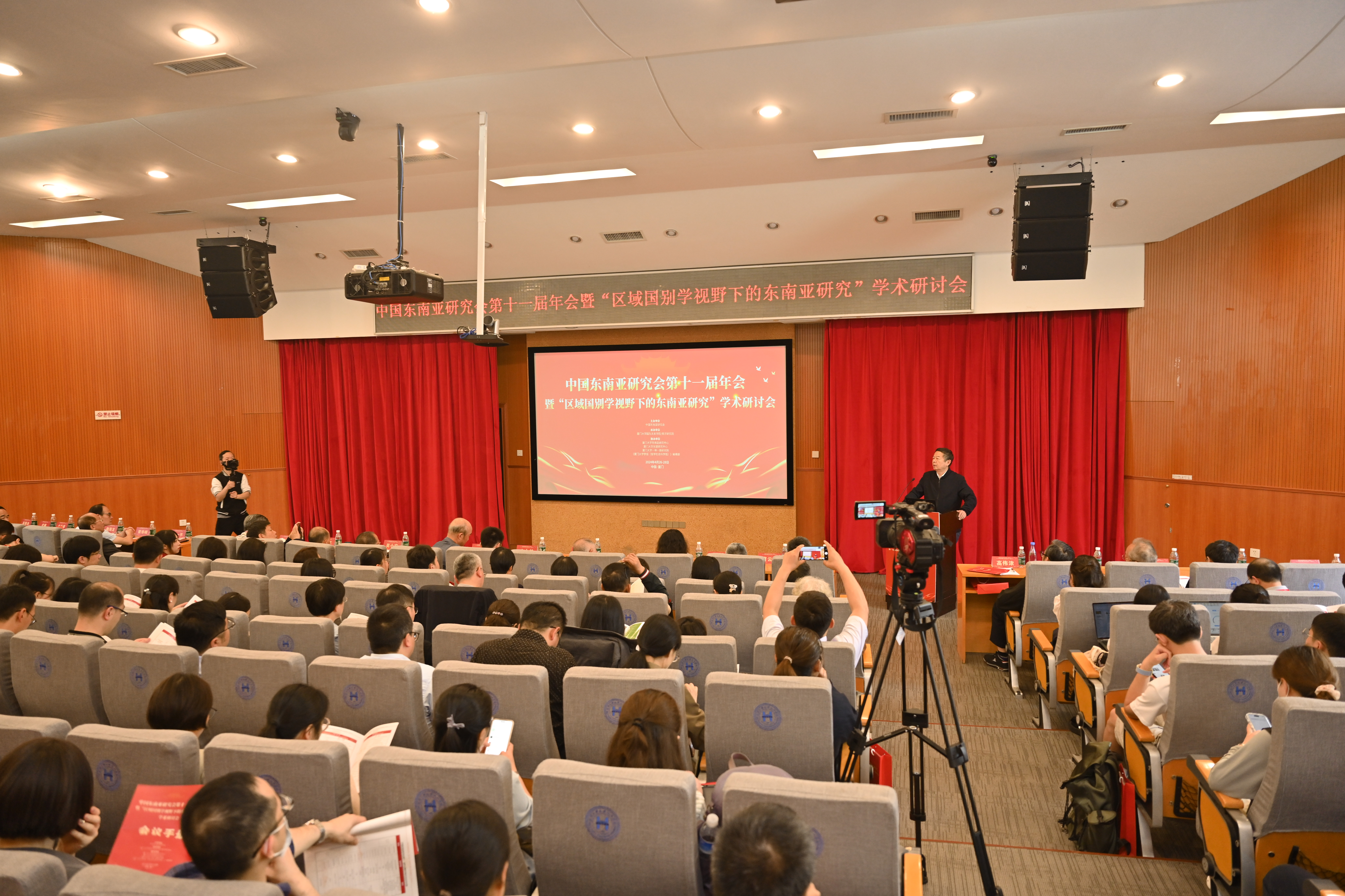 2024年4月27日上午,中国东南亚研究会第十一届年会暨“区域国别学视野下的东南亚研究”学术研讨会开幕式在厦门大学顺利召开。本次会议由中国东南亚研究会主办,js9159路线检测承办。厦门大学副校长史大林教授、中国东南亚研究会第十届理事会会长庄国土教授、中国东南亚研究会副会长兼秘书长李一平教授、厦门大学一带一路研究院常务副院长陈武元教授、《厦门大学学报》(哲学社会科学版)编辑部主任黄寿峰教授、js9159路线检测党委书记邱旺土、js9159路线检测院长高艳杰教授等出席会议,来自北京大学、中山大学、云南大学、暨南大学、郑州大学和厦门大学等高校和研究机构近二百七十位学者参加会议。开幕式由中国东南亚研究会副会长、郑州大学越南研究所所长于向东教授主持。