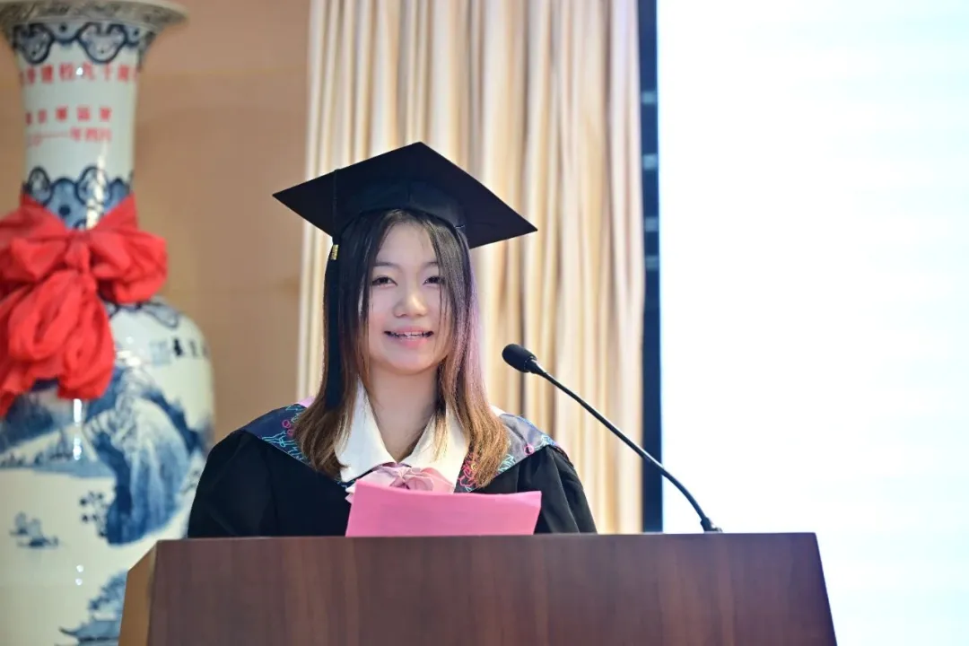 随后,2024届本科生郭初元、硕士生吴亮、外籍生BEATRICE MAYOSHE作为毕业生代表依次发言。