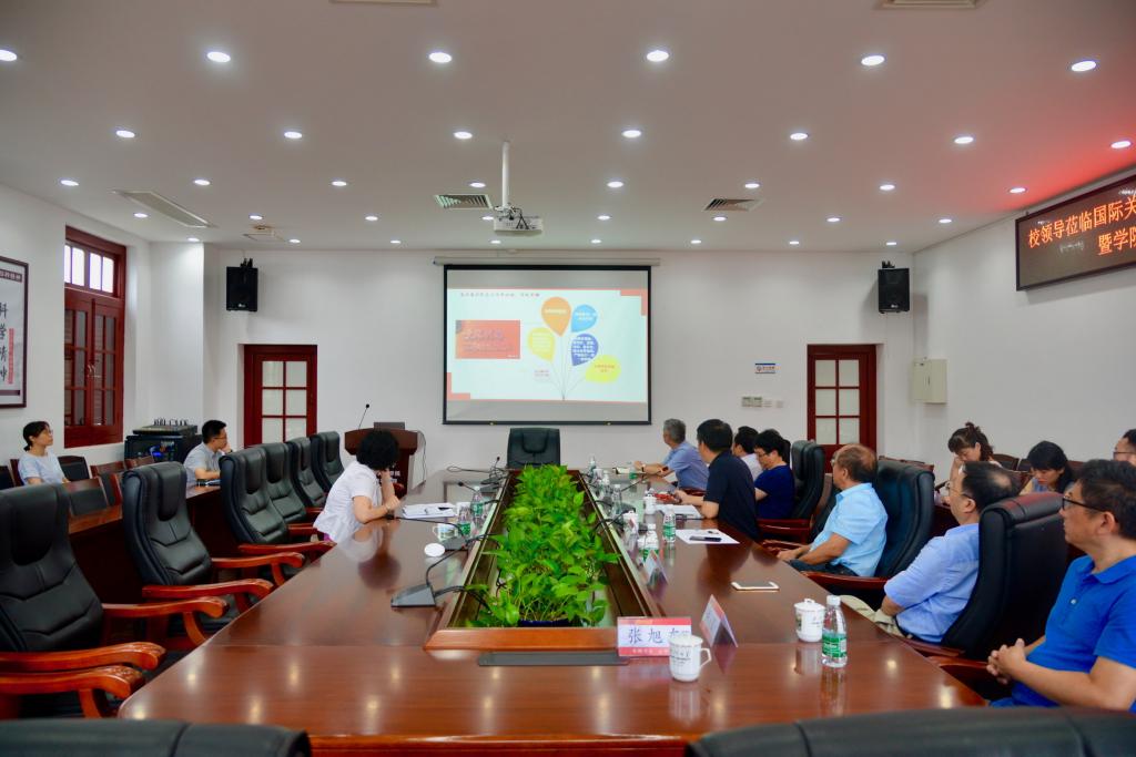 张必华书记从学院概况、学院党建工作基本情况、学院学生教育管理基本情况、非学历教育培训情况等方面作了工作汇报;李一平院长从发展战略、学科与“双一流”建设、人才引进与培养、国内外学术交流、智库与社会服务等方面作了工作汇报。