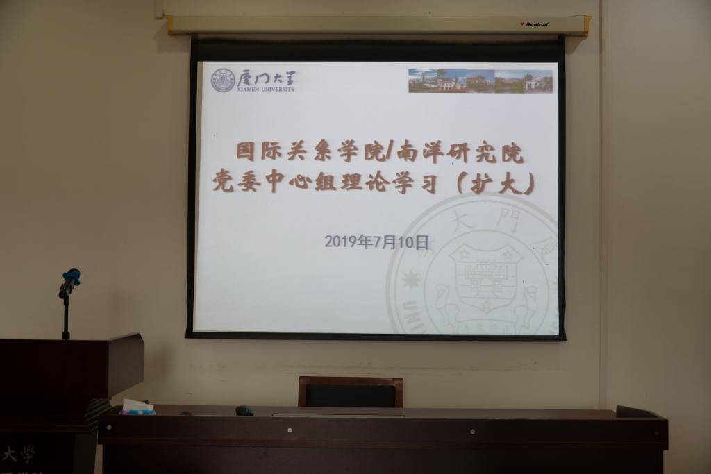 2019年7月10日下午,国际关系学院/南洋研究院在南安楼316会议室召开党委中心组理论学习(扩大),会议由国际关系学院/南洋研究院党委书记张必华主持,国际关系学院/南洋研究院全体在职教职工、博士后参加了理论学习。