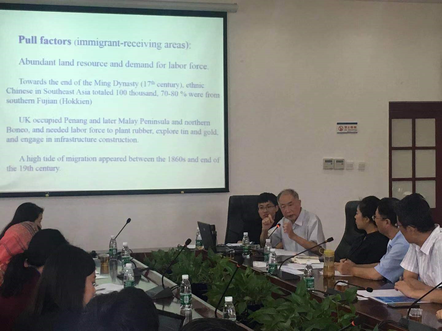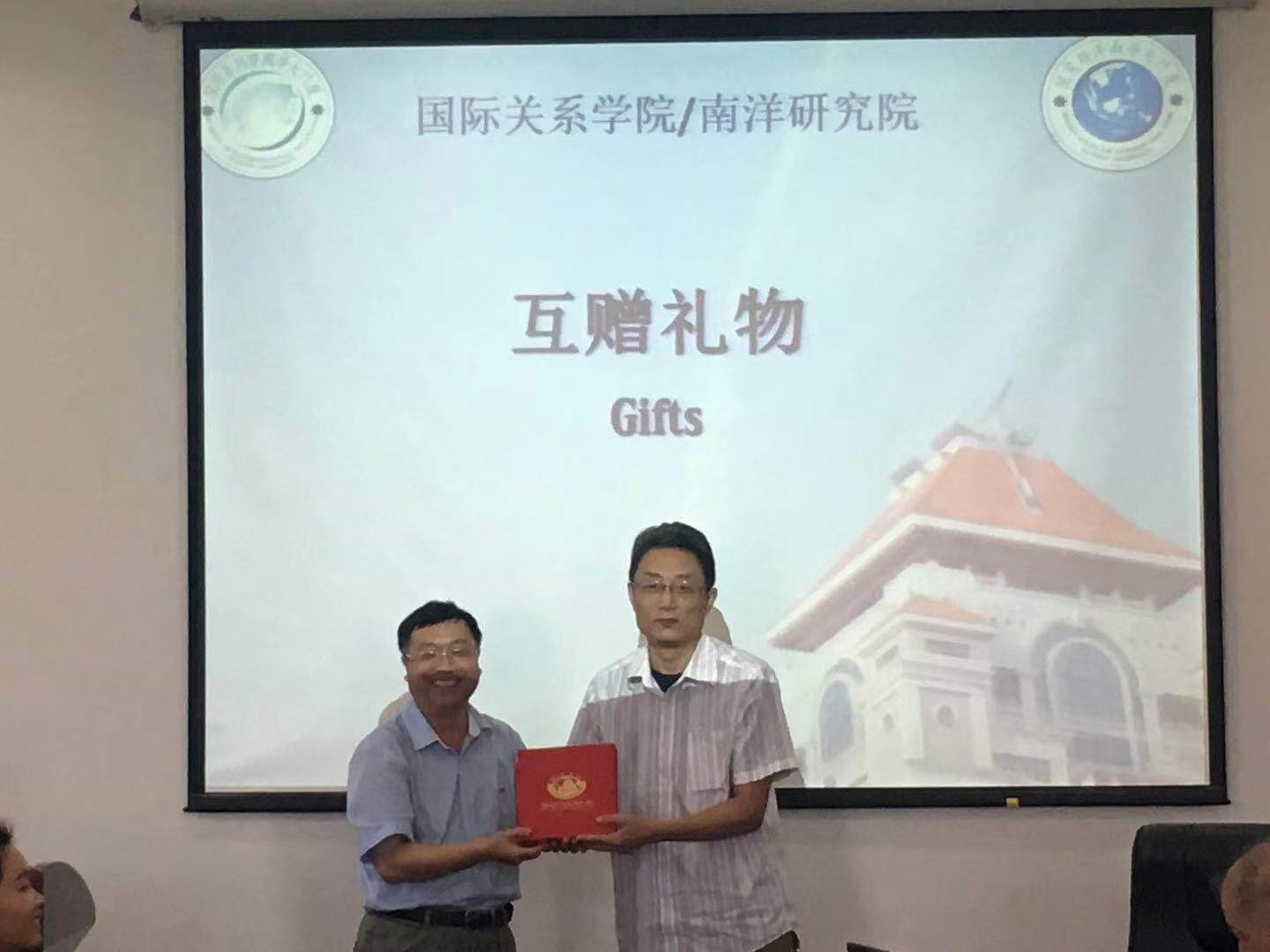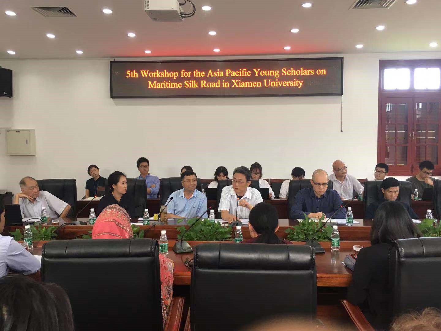 在双方简要做相互介绍后,由南洋研究院副院长吴崇伯教授致欢迎词,对到场的来自各国的青年学者表示热烈的欢迎并简要介绍了厦门大学南洋研究院的历史与学科设立以及当前的发展情况。吴崇伯教授指出:中国与东盟的经贸关系在近几十年以来经历了巨大的飞跃,当前中国是东盟的第一大贸易伙伴,东盟是中国的第三大贸易伙伴,同时东盟也是“海上丝绸之路”的重要节点,因此对于中国东盟研究以及海上丝绸之路研究对发展双边合作有重要促进作用。