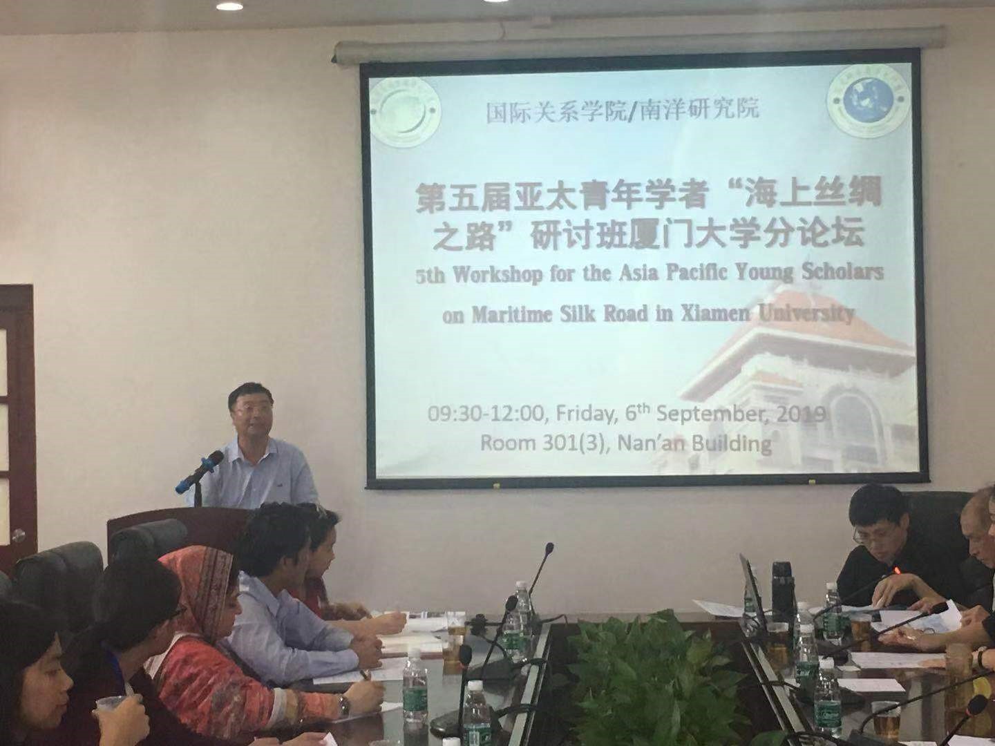 2019年9月6日上午9点30分,第五届亚太青年学者“海上丝绸之路”研讨班厦门大学分论坛在js9159路线检测举行。本次论坛由中国国际问题研究院、亚太安全合作理事会中国委员会主办,js9159路线检测负责承办,邀请了来自东盟十国、日本、韩国、俄罗斯、巴基斯坦等周边国家从事亚太地区安全问题研究的青年学者十余人参加。来自各地的青年学者与js9159路线检测师生就“一带一路”倡议以及中国在经济发展中的经验与借鉴等问题进行了深入探讨交流。