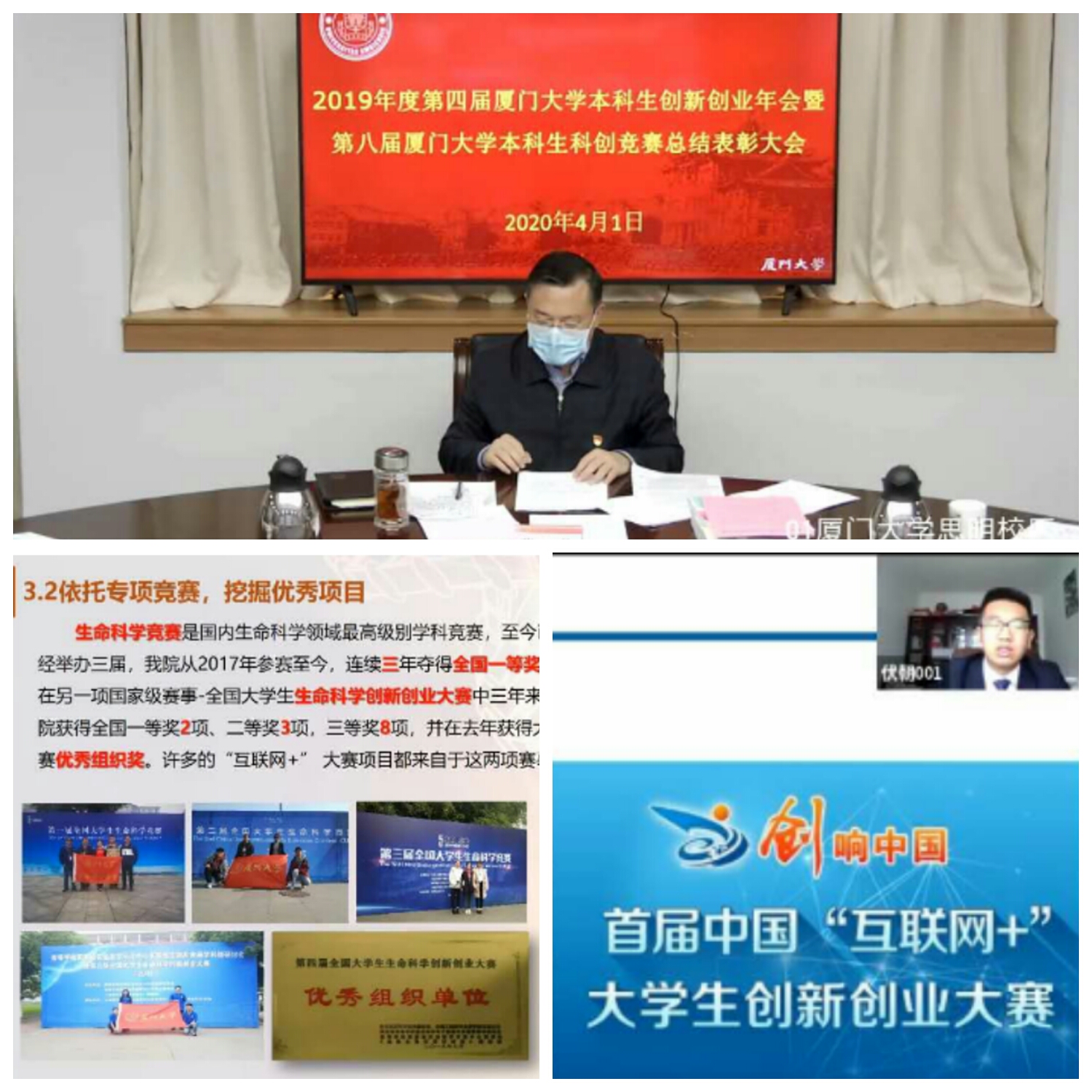 2020年4月1日,2019年度第四届厦门大学本科生创新创业年会暨第八届厦门大学本科生科创竞赛总结表彰大会在厦门大学顺利召开。