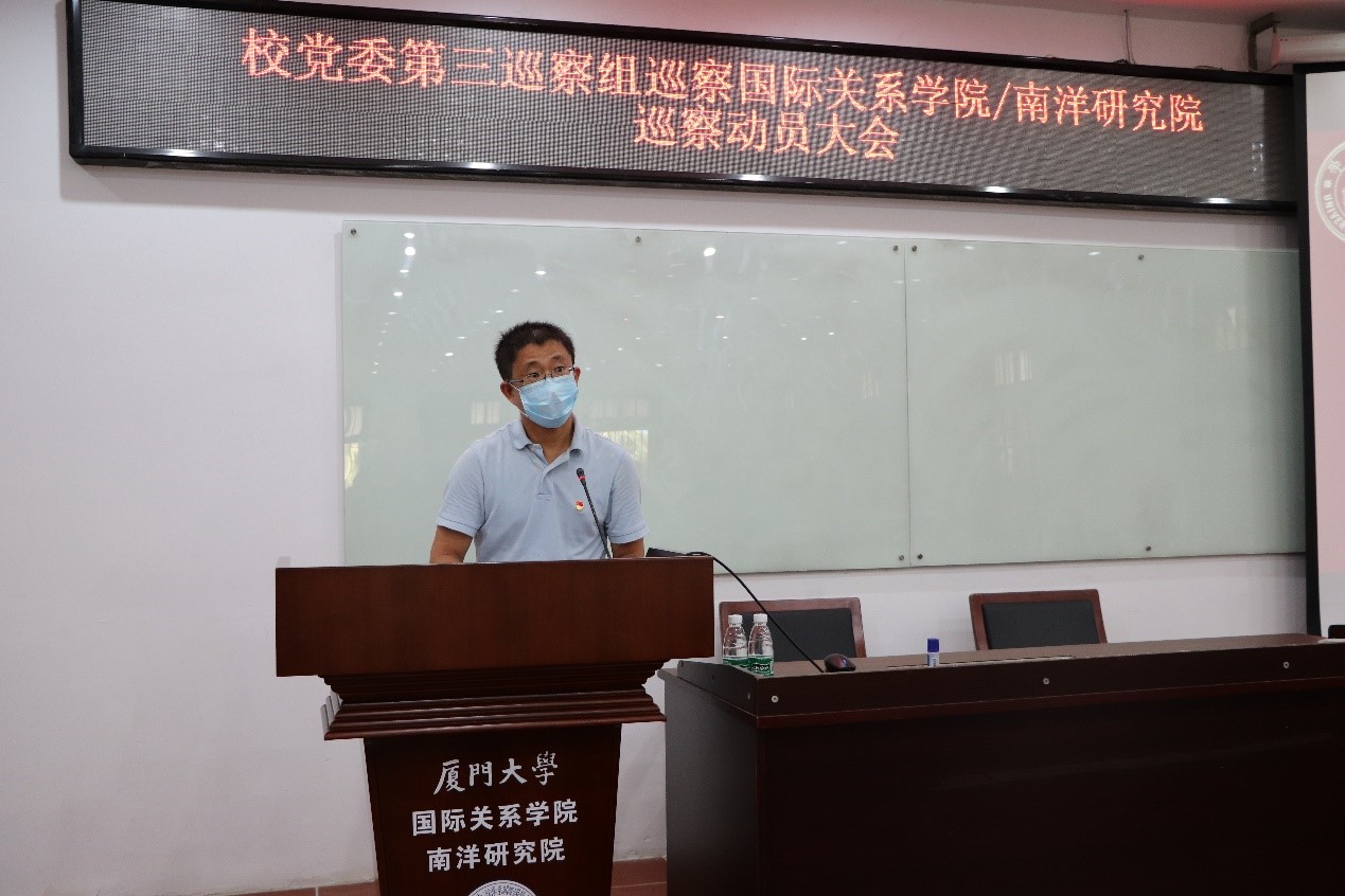 根据校党委的统一部署,2020年5月18日,中共厦门大学委员会第三巡察组巡察国际关系学院/南洋研究院工作动员会在南安楼101会议室召开。校党委第三巡察组组长孙梓光、副组长林自和、校党委巡察办副主任洪真裁及第三巡察组全体成员出席大会。学院党政领导班子成员及全体教职工参加了会议。会议由学院党委书记张必华主持。