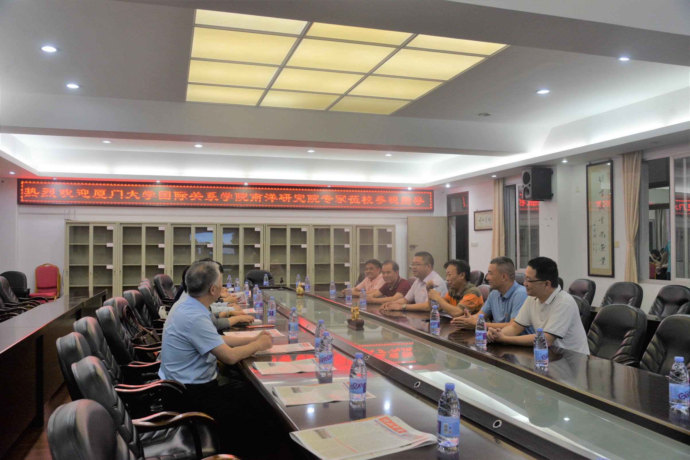 南安一中的活动结束后, 厦大师生一行立即奔赴诗山中学进行调研考察。诗山中学是南安的一所知名侨校,校长洪伟强与诗山侨联的干部介绍了诗山中学的办学历史和特色,强调诗山中学的发展得到了爱国侨亲的巨大捐助,校园内的教学楼、图书馆、体育馆、田径场都是华侨捐赠所建。在随后的座谈交流中,双方认为应该充分发挥厦大研究专长和诗山侨务资源优势,推动侨乡资源整合,在开展侨校研究、建设诗山中学侨史馆等项目中有进一步合作,把诗山中学打造为南安重要的华侨精神教育基地。