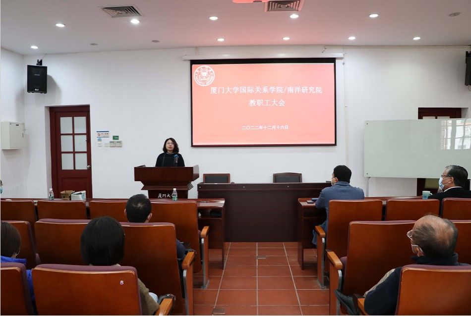 2022年12月16日下午,国际关系学院/南洋研究院教职工大会在南安楼316会议室隆重召开。