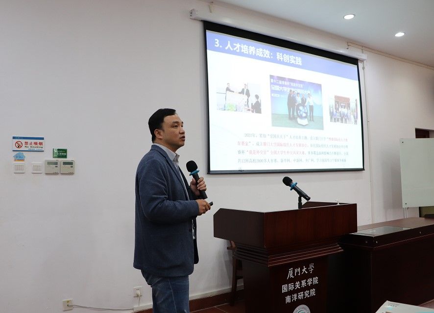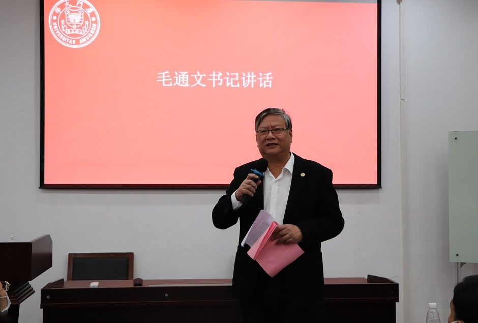 最后,学院党委毛通文书记作了总结讲话。毛书记简要回顾总结了学院这一两年取得的成就,指出学院将坚持把党的二十大精神贯穿到学院事业发展全过程、各方面,对标对表二十大报告对教育、外交、人才工作提出的新要求,以习近平外交思想为指引,扛起“为党育人、为国育才”政治责任,为“一带一路”宏伟蓝图和构建人类命运共同体贡献出厦大方案。希望学院全体教职工适应新情况,增强干事创业的精气神,以更昂扬的斗志,以更奋进的姿态,为开拓学院事业发展新局面而努力奋斗。