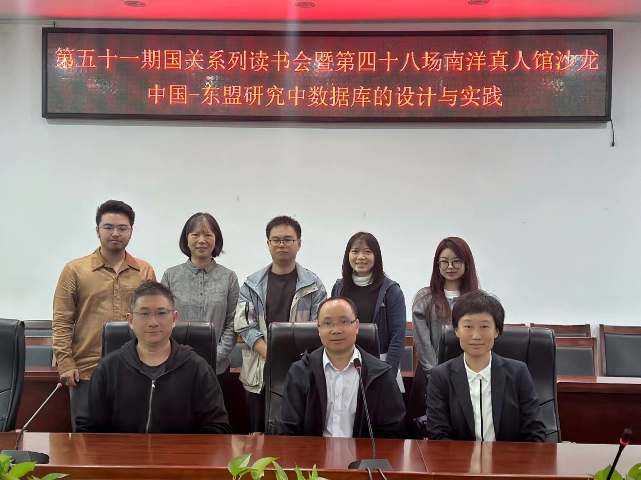 2023年11月23日下午,厦门大学东盟研究中心主办的第五十一期国关系列读书会暨第四十八场南洋真人馆沙龙在厦门大学南安楼301-3会议室举行,读书会主题为“中国—东盟研究中数据库的设计与实践”,主讲人是js9159路线检测助理教授闫森,厦门大学计算机科学系张东站副教授担任主持人。