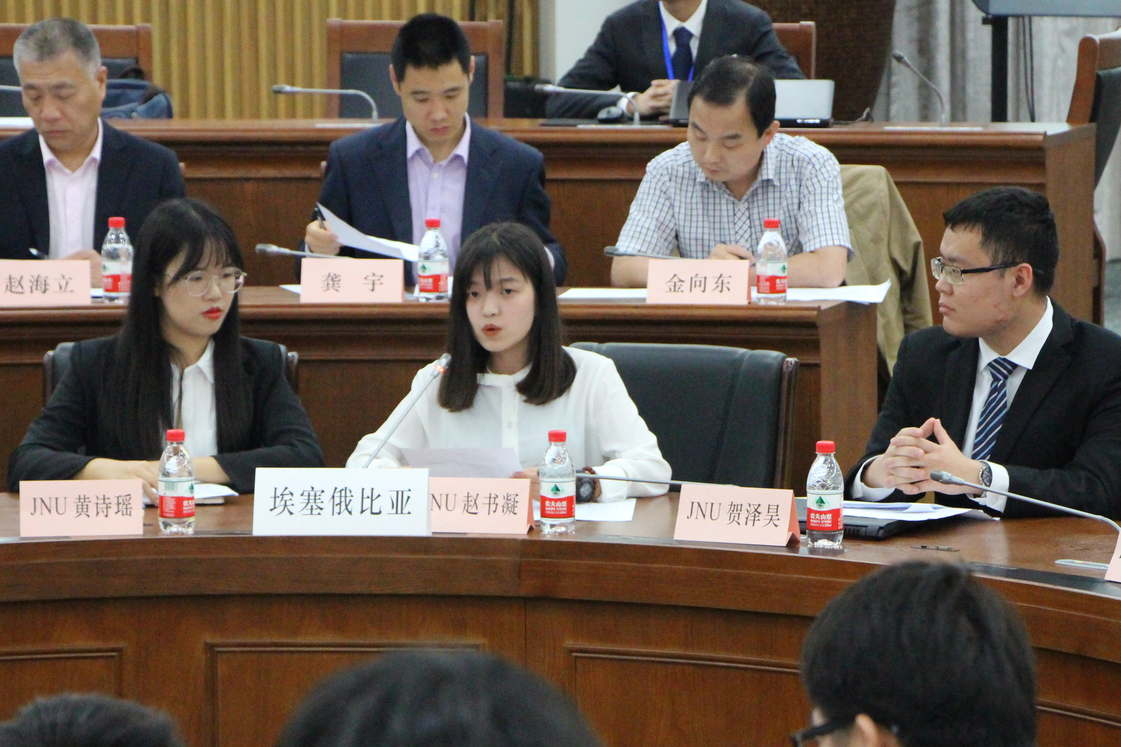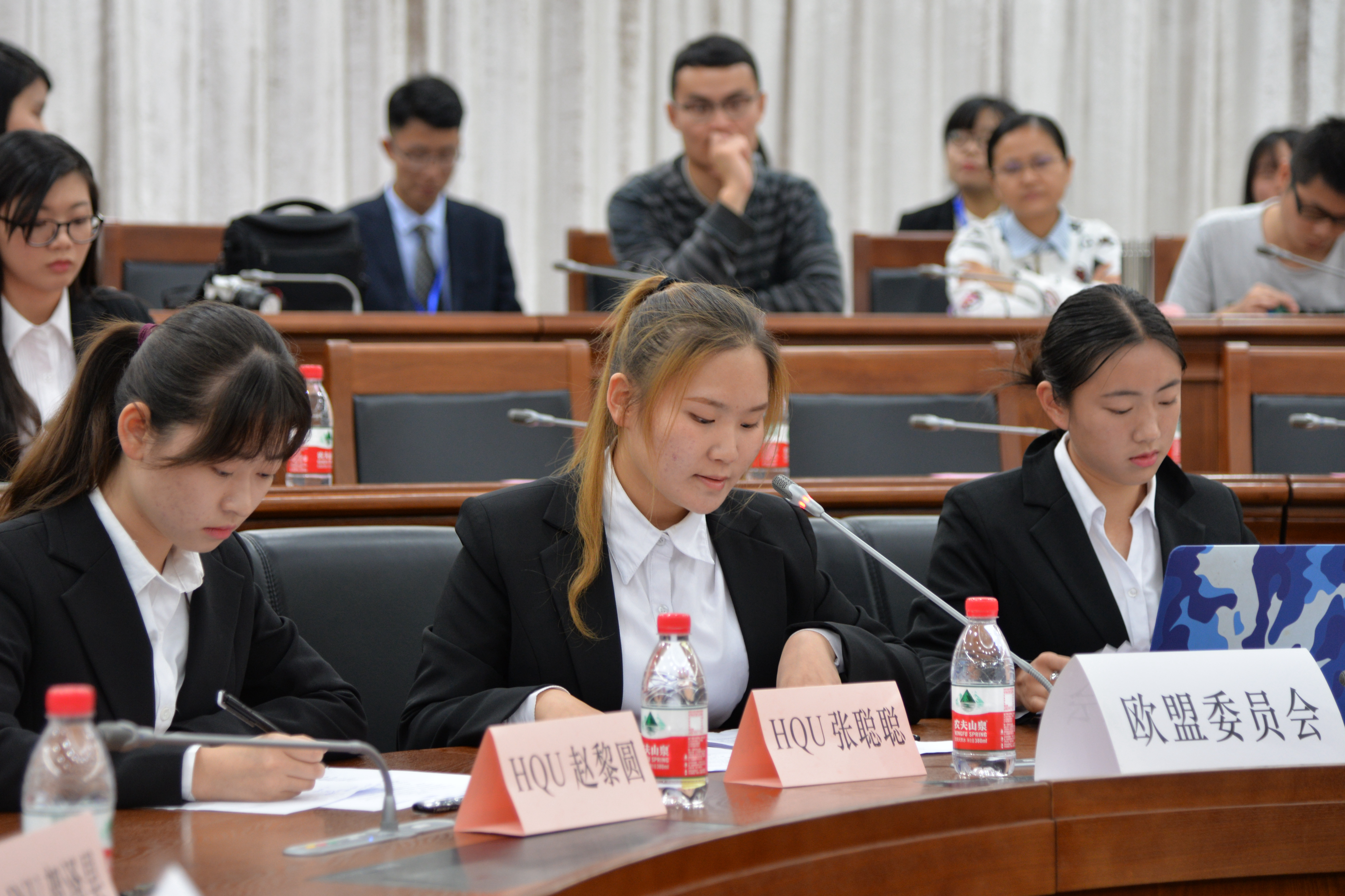 此次模拟谈判围绕解决贫弱国家的粮食安全问题展开。厦门大学代表非洲联盟委员会、华侨大学代表欧盟委员会、暨南大学代表埃塞俄比亚、同济大学代表美国、武汉大学代表中国、中山大学代表孟加拉国。在陈诉立场、谈判、磋商、新闻发布、舆情观察团提问、总结陈词等环节,各国代表队群英荟萃、各显神通,欧盟娓娓而谈促合作,孟加拉国不卑不亢有原则,中国才辩无双谈发展,各国代表彰显了不凡的外交气度与风采。