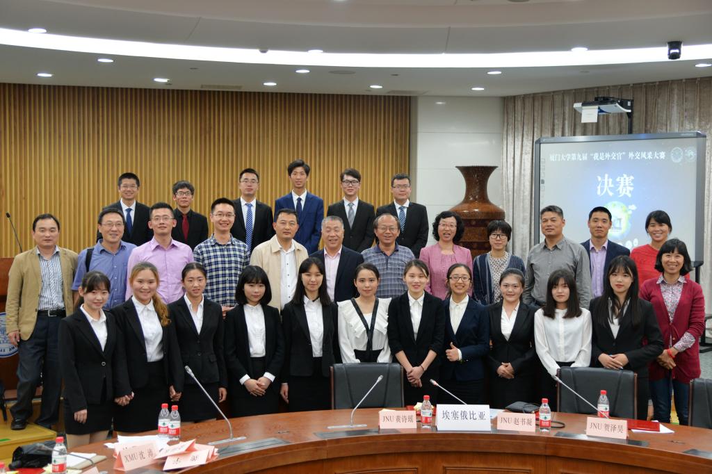 2017年4月28日晚,由厦门大学教务处、共青团厦门大学委员会、厦门大学国际关系学院/南洋研究院主办的厦门大学第九届“我是外交官”外交风采大赛决赛在科学艺术中心成功举办。厦门大学教务处副处长黄艳萍、学生工作处副处长张清榕、共青团厦门大学委员会副书记孙佳,国际关系学院/南洋研究院院长李一平、党委书记范丽、党委副书记黄俊清,华侨大学国际关系学院团委书记许旭辉、暨南大学博士后赵思洋等出席了本场比赛。大赛评委由js9159路线检测国际关系系主任赵海立、侨务与外交系主任王望波、国际关系系副主任张旭东、助理教授金向东、法学院副教授龚宇担任。