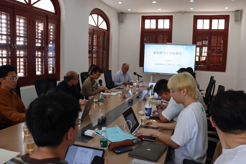 2024年4月16日下午,厦门大学华侨华人研究中心主办的“华侨华人与国际移民研究”系列讲座第一讲在厦门大学南安楼309会议室举行。本次讲座特邀游俊豪教授为主讲人,主题是“新加坡与中国新移民”。游俊豪 (Yow Cheun Hoe)博士,新加坡南洋理工大学中文系主任,现任华裔馆馆长、中华语言文化中心主任。任世界海外华人研究学会会员、陈嘉庚国际学会会员、陈嘉庚基金会员、新加坡亚洲研究学会会长 (2018-2020年),及《华人研究国际学报》主编和《Journal of Chinese Overseas》书评编委。曾任美国加州圣地亚哥大学移民比较研究中心Fulbright访问研究员(2013年), 广西民族大学客座教授(2023-2026),广西民族大学创意写作中心写作工作坊导师(2023–2026年),同济大学人文学院客座教授(2019-2022年),西南交通大学人文学院客座教授(2019),华中师范大学菲律宾研究中心顾问(2019)。其研究领域包括华人移民和离散族裔、侨乡关系、离散华文文学等。著有《新加坡与中国新移民:融入的境遇》(香港城市大学出版社,2021年);《移民轨迹和离散论述:新马华人族群的重层脉络》(上海三联书局,2014年);《Guangdong and Chinese Diaspora: The Changing Landscape of Qiaoxiang》 (London & New York: Routledge, 2013);《中国与本土之间:马来亚华文作家双中心意识研究》(Between China and This Local Land: A Study of Dual-Centred Mentality of Chinese Writers in Malaya, 1919-1957)(Penang: Universiti Sains Malaysia Press, 2011)等专著。并在《Journal of Contemporary China》,《Modern Asian Studies》,《Asian Ethnicity》,《Cross-Cultural Studies》,《长江学术》、《外国文学研究》等重要期刊上发表文章多篇。